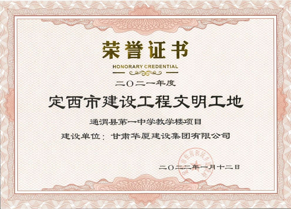 通渭县第一中学教学楼项目获定西市建设工程文明工地