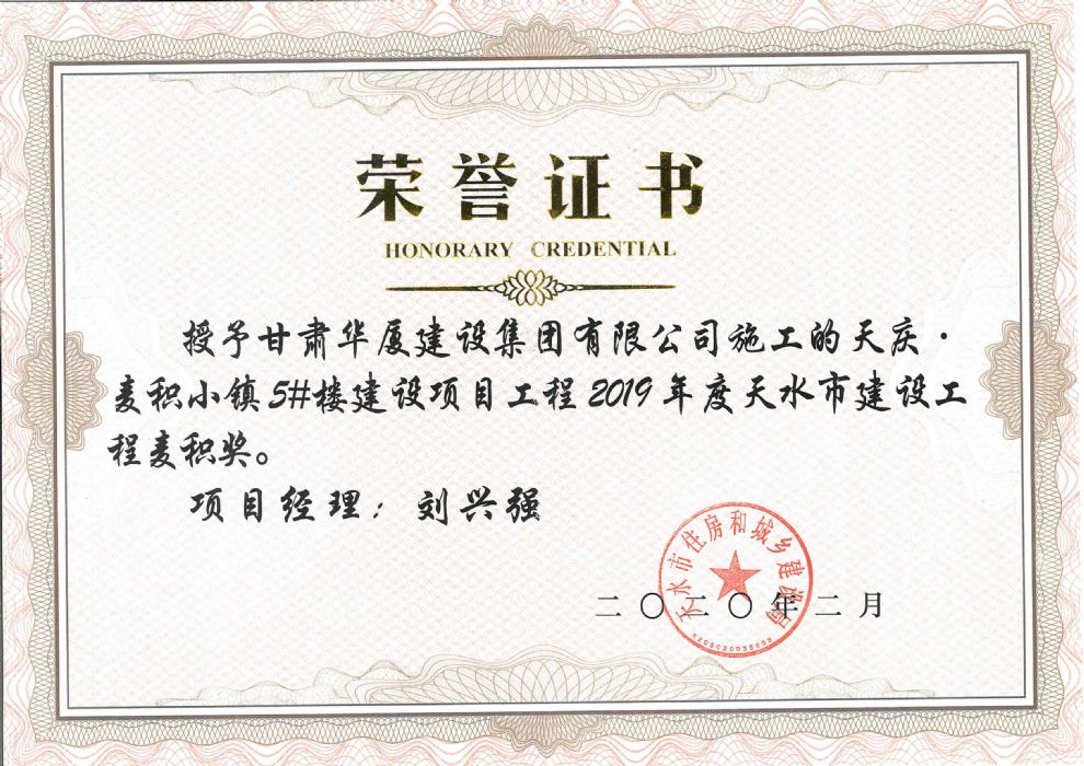 天庆·麦积小镇5#楼获天水市建设工程麦积奖