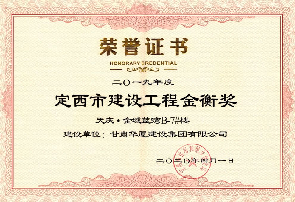 天庆·金域蓝湾B-7#楼获定西市建设工程金衡奖