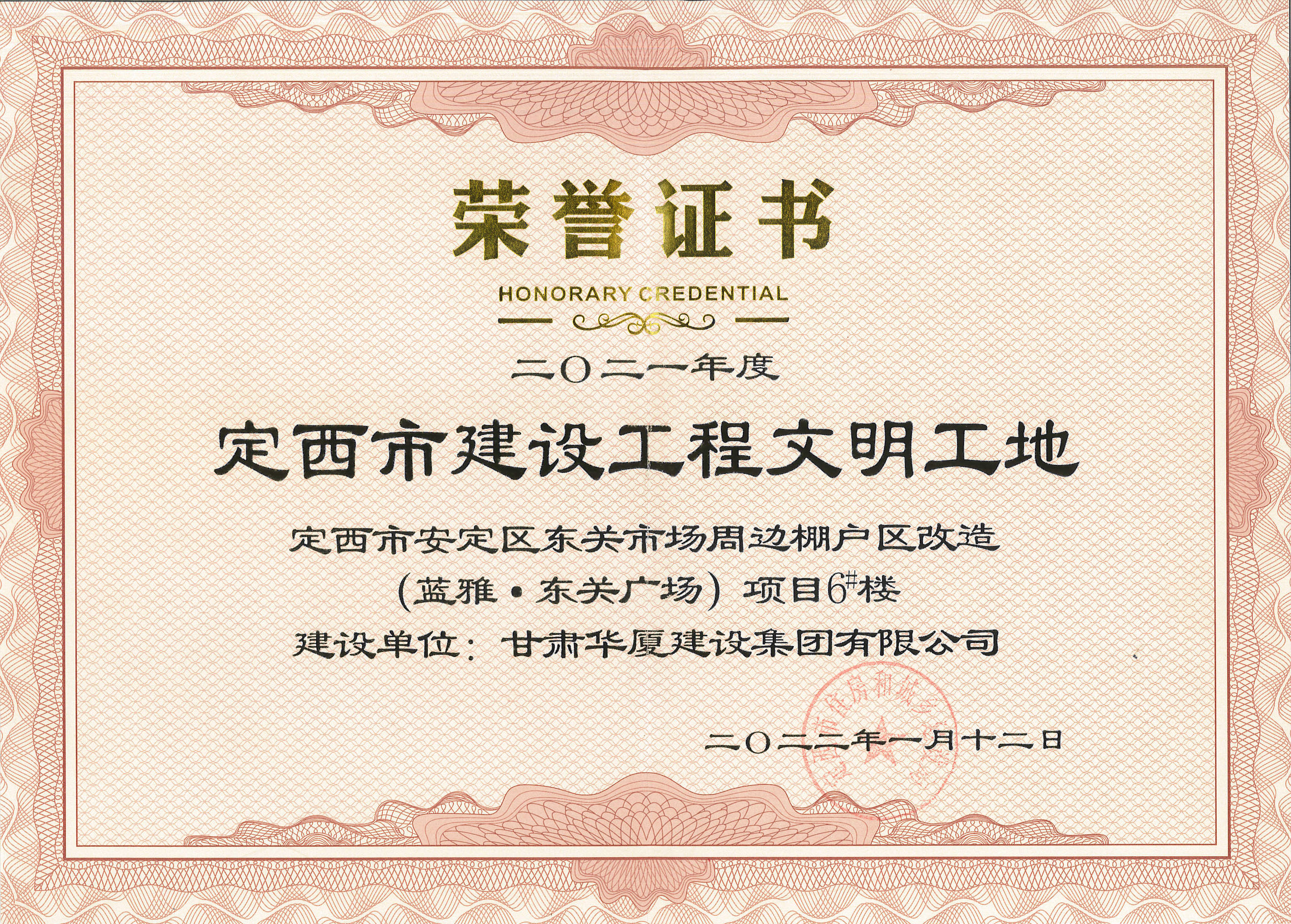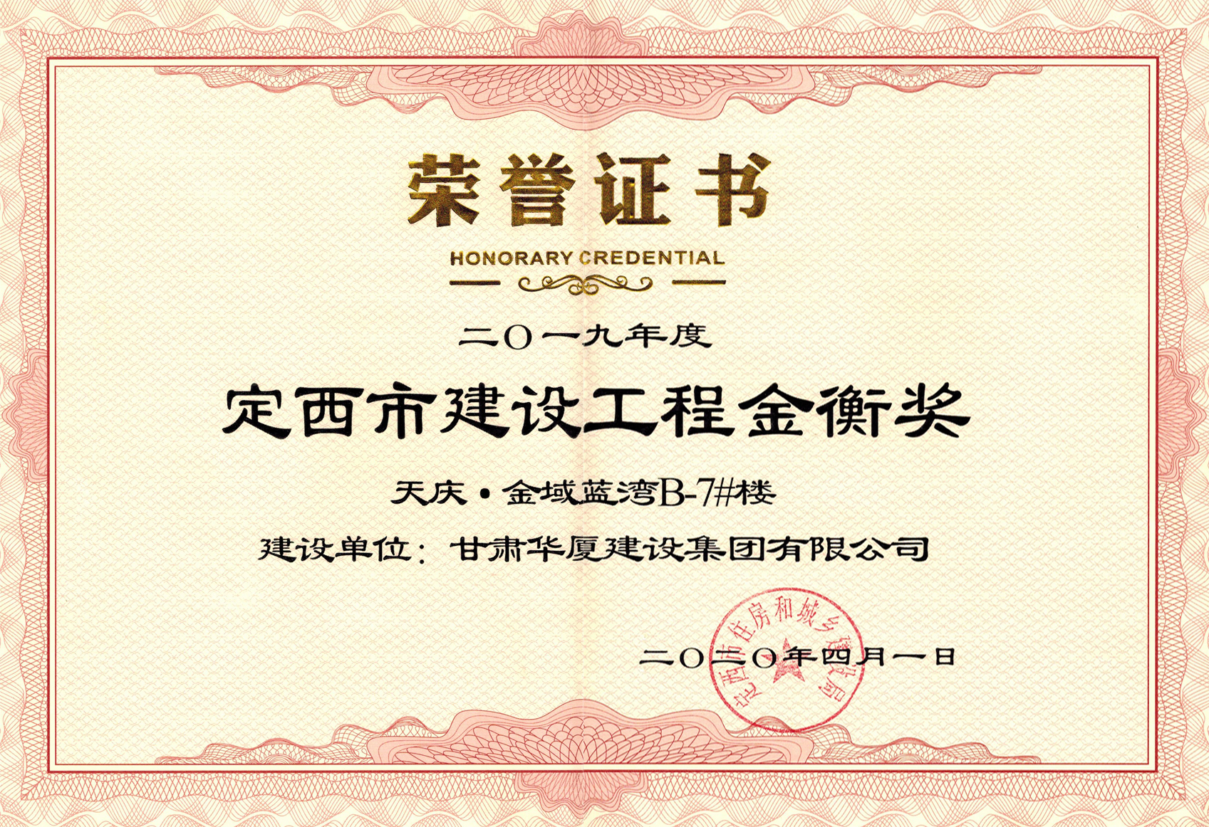 天庆·金域蓝湾B-7#楼获定西市建设工程金衡..