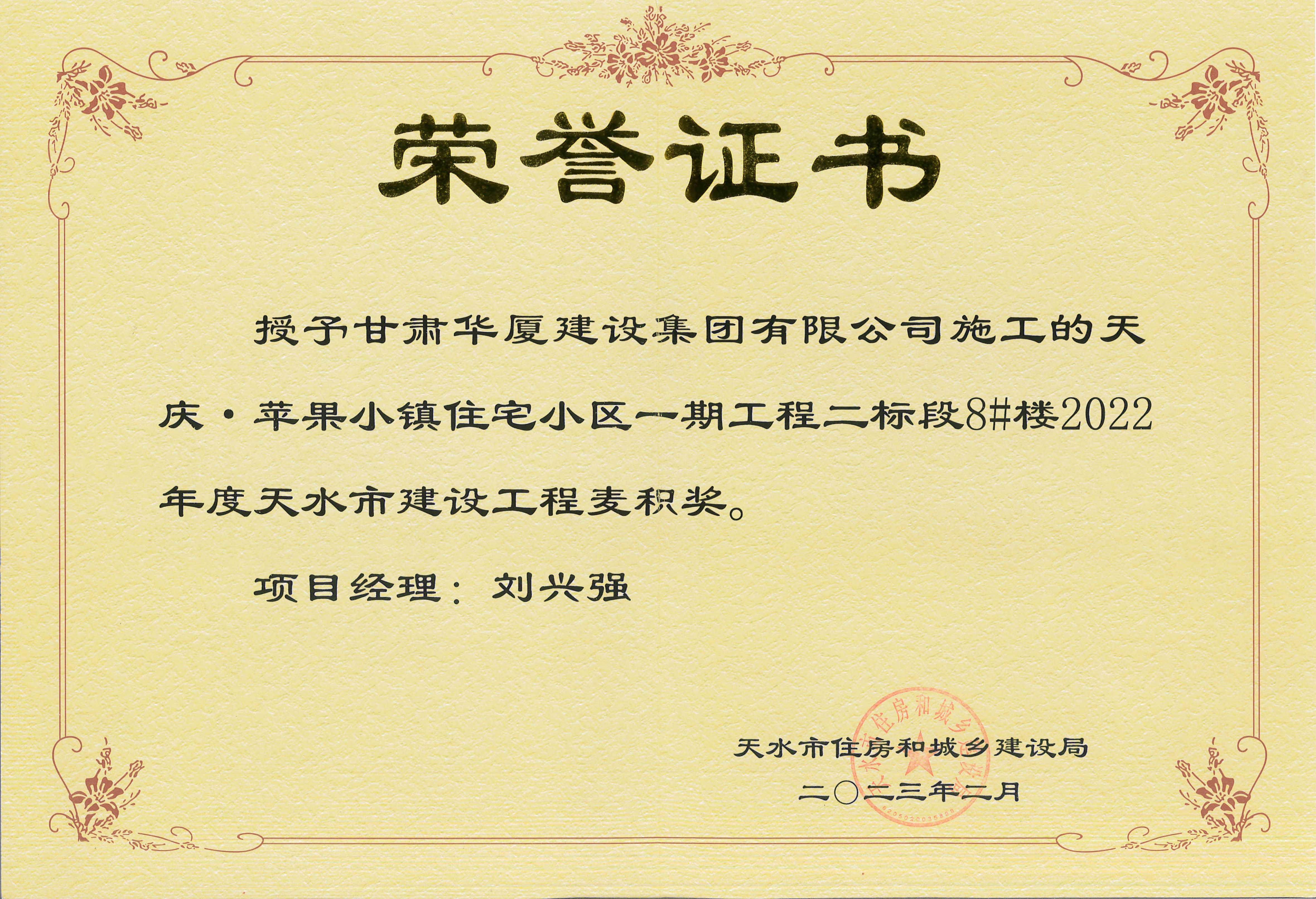 天庆·麦积小镇5#楼获天水市建设工程麦积奖